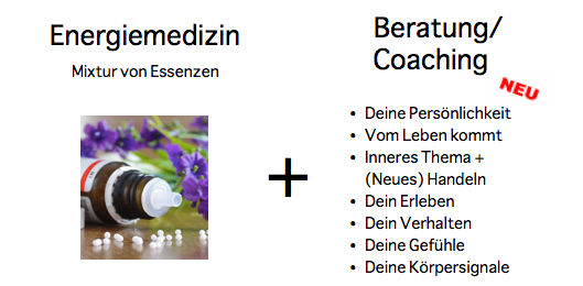Ein Heilmittel aus der Naturheilkunde (z.B. Homöopathie, Bachblüten, Schüsslersalze, Aloha-Essenzen, etc.) hat eine Therapiewirkung + liefert uns eine Botschaft zu unserem Innenleben und einen Coaching-Impuls.